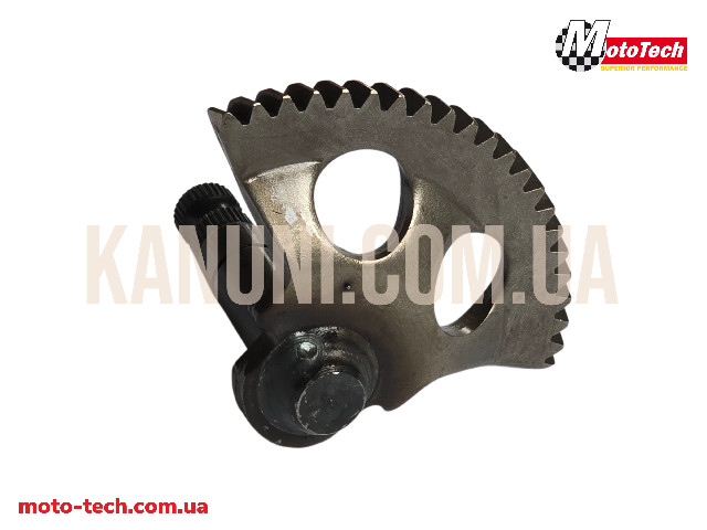 Півмісяць кікстартера (секторна шестерня) Yamaha 3KJ - це ключовий елемент механізму запуску двигуна, який передає зусилля від важеля кікстартера до колінчастого вала. Дана деталь призначена для скутерів Yamaha з двигуном серії 3KJ та забезпечує надійний і плавний запуск двигуна. Точна геометрія зубців для стабільного зчеплення, підвищена зносостійкість і довгий термін служби, надійна посадка на валу, без люфтів. Сумісність: Yamaha Jog 3KJ,