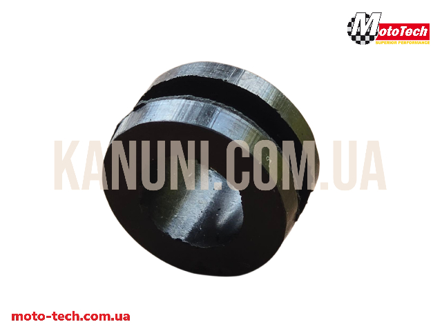 Резинова втулка, призначена для фіксації декоративної накладки на глушнику скутера HONDA AF34. Забезпечує надійне утримання накладки, знижує вібрації та шум під час руху. Виготовлена з міцної термостійкої гуми, стійкої до високих температур і впливу вихлопних газів.