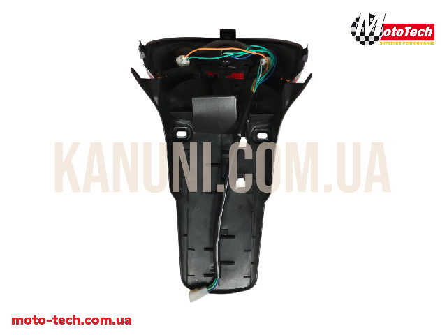 Задній хвіст у зборі для Yamaha BJ SA-24J. Комплект: бризковик та задні ліхтарі у зборі, призначений для скутерів Yamaha BJ SA-24J. Матеріал: міцний пластик. Колір скла: червоний (стоп) / помаранчевий (повороти). Надійна заміна для відновлення задньої оптики скутера після пошкодження або зносу.