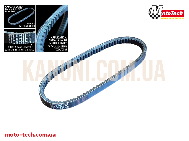 Ремінь варіатора MotoTech (Yamaha 5ST-E7641-00) є високоякісним аналогом оригінальних комплектуючих для японських та китайських скутерів. Ця серія ременів відрізняється підвищеною зносостійкістю та стабільною роботою в широкому температурному діапазоні. Виробник: MotoTech (Тайвань). Виготовлений з високоякісного еластичного каучуку, що забезпечує гнучкість і запобігає появі тріщин при інтенсивній експлуатації. Наявність міцної кордової нитки робить ремінь стійким до стирання та розтягування, що значно подовжує термін його служби. Для забезпечення максимального ресурсу ременя варіатора MotoTech, перевіряйте стан шківів. |
