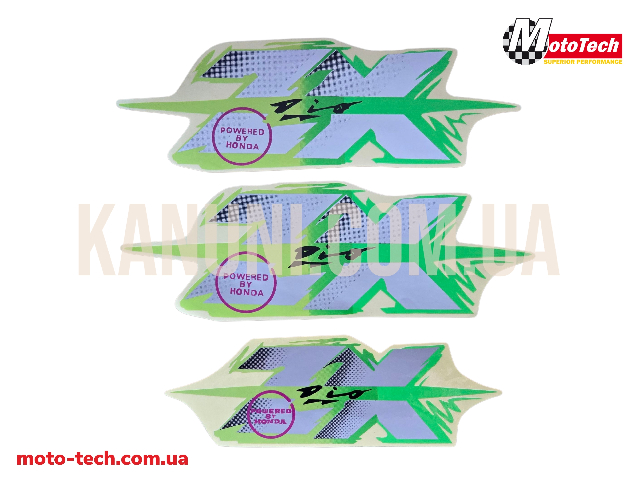 Оновіть вигляд свого скутера з цим стильним набором декоративних наклейок HONDA DIO ZX. Яскравий дизайн із поєднанням зелених та сріблясто-фіолетових відтінків надає техніці динамічного спортивного вигляду. Просте наклеювання — добре тримається на пластику та металі. Підходить для скутерів Honda Dio ZX та аналогічних моделей. У комплекті кілька елементів для повного оновлення зовнішнього вигляду.