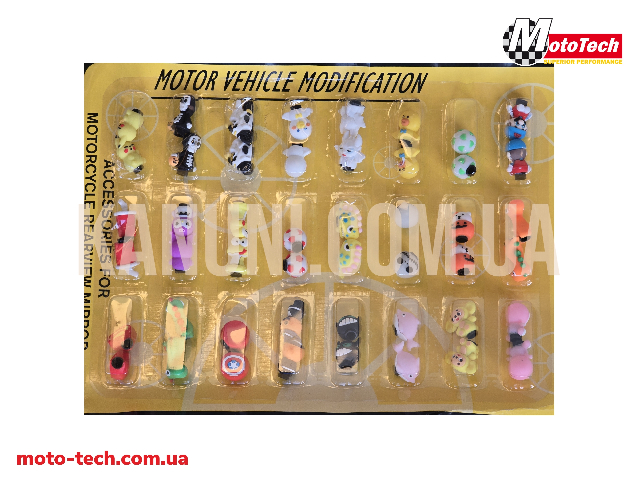 Набір декоративних ковпачків на ніпель (24 шт.) – яскравий тюнінг для авто, мото та велосипеда. Оригінальний набір із 24 декоративних ковпачків на ніпель — це простий спосіб додати індивідуальності вашому транспорту. Кумедні фігурки у вигляді тваринок, персонажів, машинок, м’ячів та інших яскравих елементів зроблять авто, мотоцикл або велосипед помітним та стильним. Кількість у наборі: 24 шт.Тип: ковпачки на ніпель (золотник). Матеріал: міцний пластик. Колір: мікс (різні дизайни в одному наборі) Призначення: захист ніпеля від пилу, бруду та вологи + декоративна функція. |